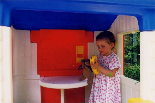 Abby was such a lucky girl. She had so many friends who loved to play with her. One of her favorite games was telephoning pretend friends with her puppy.