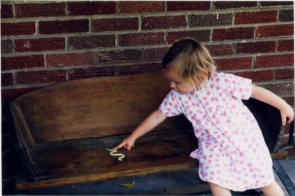 Often she played a fun game of poking and wiggling with her favorite snake.
